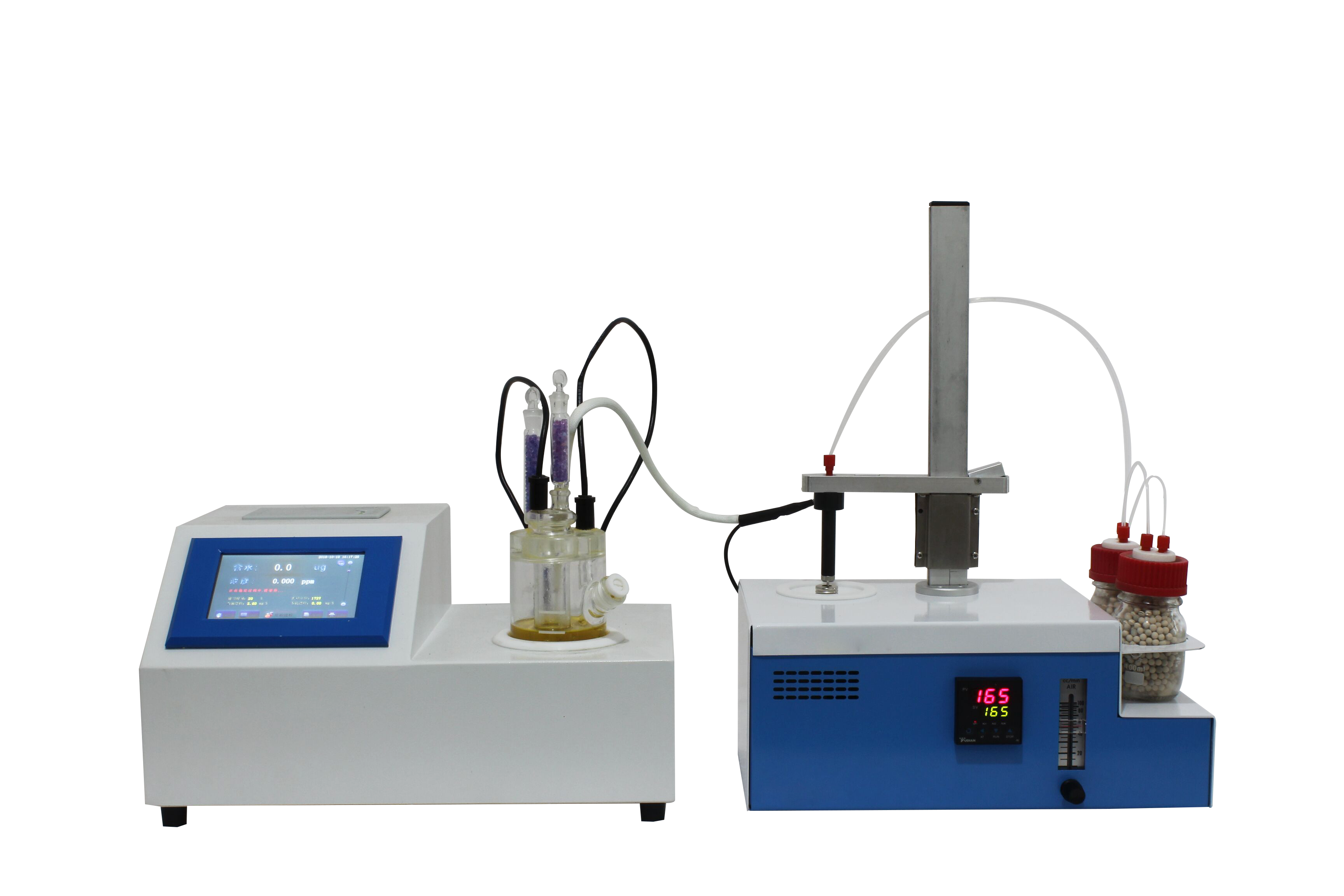 KSQL-310S-KHF 卡氏加熱爐主要分為兩個部分,第一個是V-310S庫侖法卡爾費(fèi)休水分測定儀,第二個是KHF-100卡氏加熱爐,由這兩部分組成了完整的KSQL-310S-KHF 鋰電池材料專用卡氏水分測定儀。