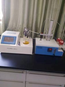 3.6、初次使用新鮮的庫侖電量法卡爾費(fèi)休試劑含有過量的碘,顏色為深紅色,儀器中間提示過碘狀態(tài),然后用微量注射器抽取20~50ul的純水從加樣口緩慢加入反應(yīng)杯液面以下,直至反應(yīng)杯內(nèi)液體顏色變淡黃色,儀器左上方提示過水,含水量顯示值開始計(jì)數(shù),停止加水,如果加入過多的水會導(dǎo)致電解平衡需要較長的時(shí)間。
