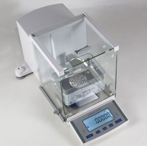 2、測(cè)量空氣中重量完成之后,將樣品放入量測(cè)籃上的抗浮架之下待穩(wěn)定后即顯示視密度值